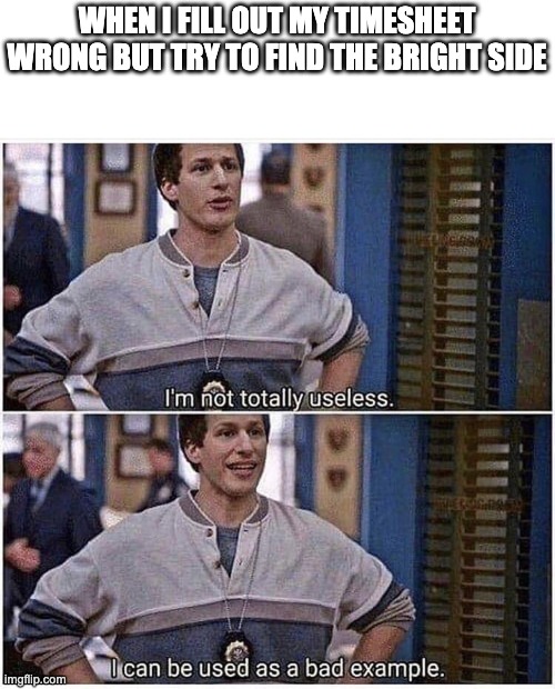 Everyone’s done it—filled out their timesheet wrong and then tried to pass it off like it’s no big deal. This meme shows how, even in our mistakes, we can find a silver lining (and a bit of humor).