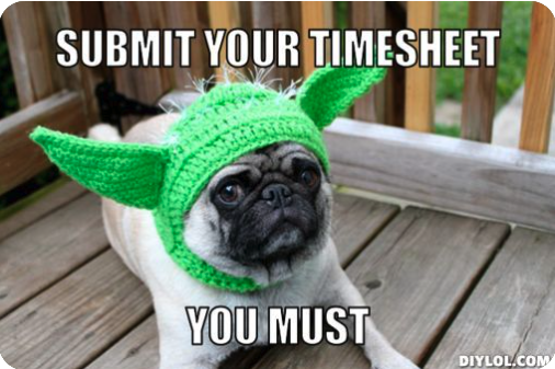 Then there’s the classic 'Yoda Dog,' reminding managers of a message they’ve sent more times than they can count—'Submit your timesheets, you must.